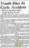 2. "Youth Dies in Cycle Accident," news article, The Times, 2 May 1957; online images, Newspapers.com ( : accessed 28 October 2014). Page 1.