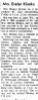 8. "Mrs. Evelyn Klimko," obituary, Oshkosh Daily Northwestern, 8 September 1962; digital images, Newspapers.com ( : downloaded 2 May 2016). page 17, column 2.