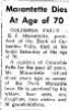 17. "E.J. Marantette Rites Tuesday," obituary, Kalispell Daily Inter Lake, 11 December 1961; digital images, NewspaperArchive ( : accessed 22 September 2014). page 1.