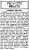 5. "Twin City Deaths -- George Beaudo," obituary, Appleton Post Crescent, 18 February 1928; digital images, ( : accessed 3 November 2015). page 3, column 5.