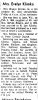 8. "Mrs. Evelyn Klimko," obituary, Oshkosh Daily Northwestern, 8 September 1962; digital images, Newspapers.com ( : downloaded 2 May 2016). page 17, column 2.
