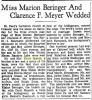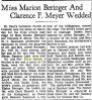 3. "Miss Marion Beringer and Clarence F. Meyer Wedded," The Sheboygan Press, 12 December 1950; online image, Ancestry (http://home.ancestry.com/ : downloaded 30 July 2016), Newspapers and Publications: Sheboygan Press (Sheboygan, Wisconsin). page 17.