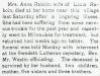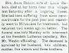 Mrs. Anna Raboin, wife of Louis Raboin, died at her home near this village last Saturday after a lingering illness. She had been suffering from some nervous trouble for the past year and recently went to Milwaukee for treatment, but returned two weeks ago no better. The funeral was held Monday, with interment at Swedish Lutheran Cemetery, Rev. Mr. Westin officiating. The deceased is survived by her husband, two children, mother, five sisters, and three brothers.