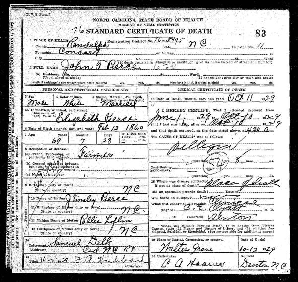 1. Death Certificate- Register of Deeds-Randolph County NC.
