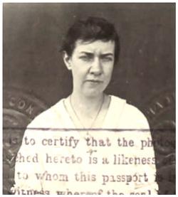 Trained Nurse. Passport Application to take up missionary Work in India. Sailing from Vancover, B.C. on board the Empress of Japan on 16 Aug 1917. Mrs Anna M. Hull her aunt swore to the fact that she was born at Mahabaleshwar, India on 30 Mar 1891. Frances is five feet seven inches, Low forhead, hazel eyes, large nose, sharp chin and full face.Note